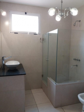 Piso de porcelanato, grifería y sanitarios de calidad.