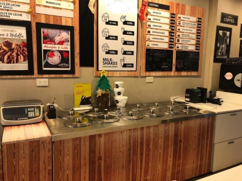 CONTACTO: Elio - 1534714047. vendo fondo de comercio heladería/cafeteria con fabricación propia . Ubicado en el centro de palermo, a una cuadra del jardín botánico y a 5 cuadras del jardín japonés. Local con 97 mts, AA central y totalmente listo para empezar a trabajar