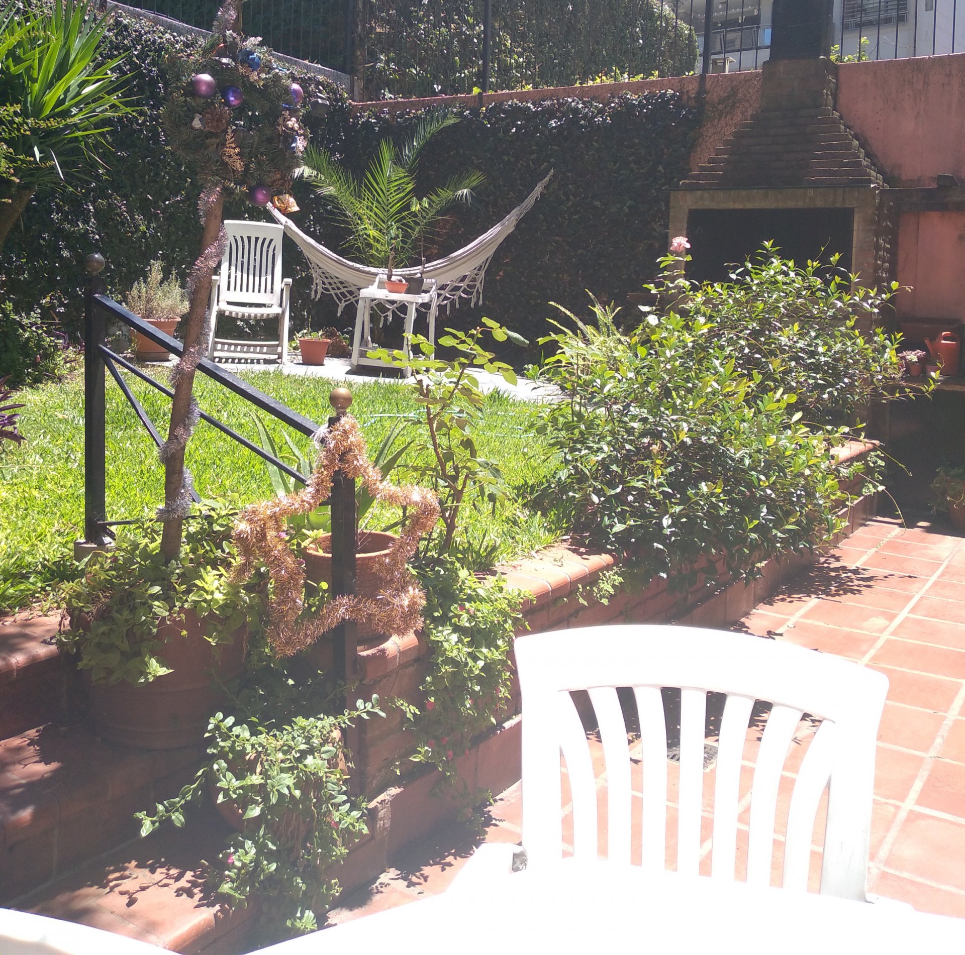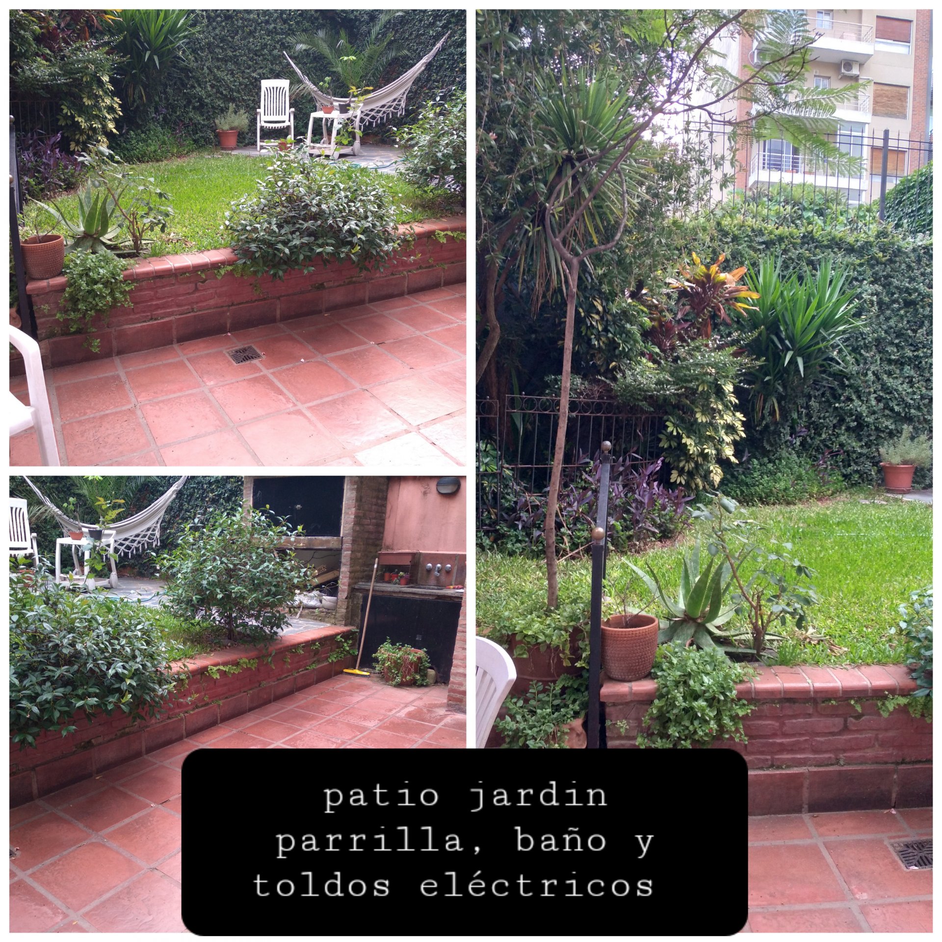 Patio jardin de 64 m2, con parrilla , toldos eléctricos y un baño o cuarto de guardado