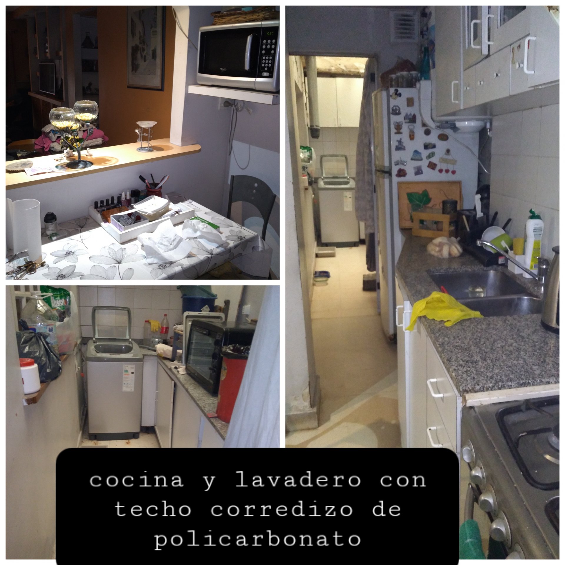 Lavadero independiente de 2 x 3 aprox. con techo corredizo de policarbonato y rejas.