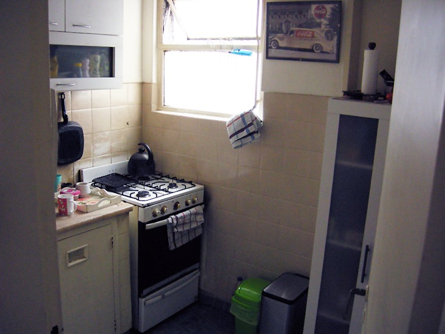 El departamento cuenta con 88 m2 de superficie total (apróx y según escritura). Es un octavo piso contra frente muy luminoso dado que el corazón de manzana es muy amplio con muchos jardines. Se ingresa por puerta principal (el depto posee ingreso de servicio), a la izquierda está la cocina (con cocina a gas y calefón) comunicada con ambiente de servicio con toillete o estudio o comedor de diario o 3er dormitorio que se comunica a su vez con el living comedor y otro de los dormitorios. Desde el hall de entrada se accede al living-comedor de grandes ventanales y puerta al balcón corrido que acompaña e ilumina al living-comedor, baño principal y uno de los dormitorios. Desde el living-comedor se accede a un pasillo que comunica al baño principal en primer termino y a la derecha, y a los dos dormitorios sobre el final uno a la derecha y otro a la izquierda. El dormitorio de la izquierda posee un ambiente más que puede usarse como vestidor, 4to dormitorio, etc. Todos los ambientes poseen ventanas (y menos cocina y baño poseen pisos de parquet. El departamento tiene unos 50 años de antigüedad.