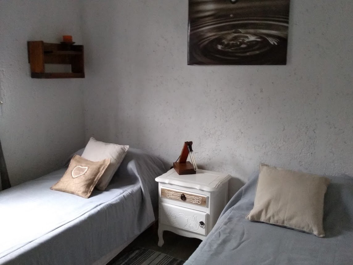 Alquiler temporario, chalet de campo en Cerro de Oro, Merlo, San luis, a solo cinco minutos del centro de Merlo, edificada sobre lote de 1000 M2, superficie cubierta 120 M2, 2 dormitorios, uno con baño en suite, cama matrimonial, Aire acondicionado, TV Led de 50 ", segundo dormitorio con dos camas individuales y Aire acondicionado y ventilador de techo, baño de uso común con ante baño, inodoro, bidet y ducha, Living comedor cocina integrado de 50 M2, muy amplio, equipada con cocina a gas, cafetera electrica, microondas, heladera con freezer, pava electrica, utensillos de cocina, mesa para cuatro personas, sillón de dos cuerpos, tv Led de 32 ", directv opcional, servicio de internet, estufa tromen a leña, ventilador de techo, parrilla, cochera cubierta, etc