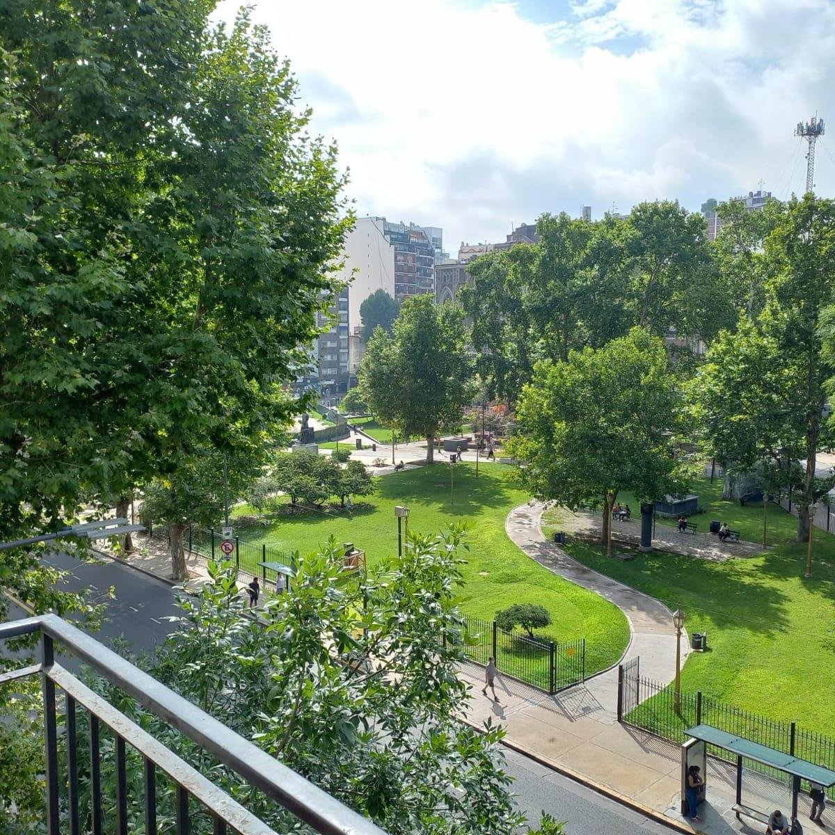 2 amplios ambientes- 56 metros. Totalmente amueblado y equipado. Calefacción y agua caliente central. Aire acondicionado f/c Sist. Inverter. Sol, amplio balcón, muy luminoso vista panorámica sobre la plaza, dormitorio a pulmón de manzana. Hall de distribución, profusión de placards Estratégicamente ubicado a metros de estación de Subte "H", cercano a las Universidades Uba y Barceló, Biblioteca Nacional, Museos y C.C. Recoleta y Parques Mitre, Plaza Francia, Recoleta Urban Mall y hospitales. Abierto a otras opciones a conversar. No se admiten mascotas.-