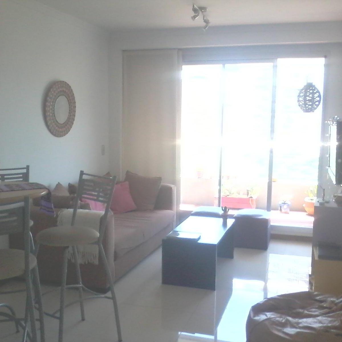 Aire acondicionado en living-comedor y ventilador de techo en dormitorio.