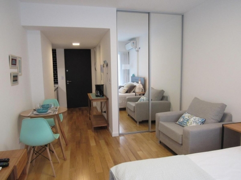 CONTACTO: Eugenia Hollmann - 1164929999. Depto 1 ambiente, 2° piso sobre calle Dorrego. Edificio con vigilancia y recepción 24 horas. Laundry. Apto profesional. Apto alquiler temporario. Amenities: Piscina climatizada con sauna y terrazas para relax - Piscina de verano con solarium - terrazas de relax y solarium - Sum con parrilla