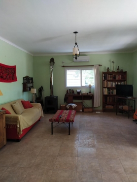 Descripción de la casa: moderna, 12 años de su construcción, toda de material, no tiene durloc. Dos amplios dormitorios, baño amplio, pasillo amplio, cocina y living-comedor integrados. Baño totalmente revestido de cerámicos. Pisos cerámicos. Cerámicos exteriores imitación lajas antihumedad, techo cielorraso blanco impecable y chapa exterior. Ventanas de aluminio galvanizado, todas con mosquitero, todas con reja y postigos de hierro. Entrada principal con reja. Superficie cubierta casa: 120 m2. Superficie cubierta garage: 30 m2. Superficie cubierta ampliación: 50 m2. Superficie cubierta galpón: 160 m2.