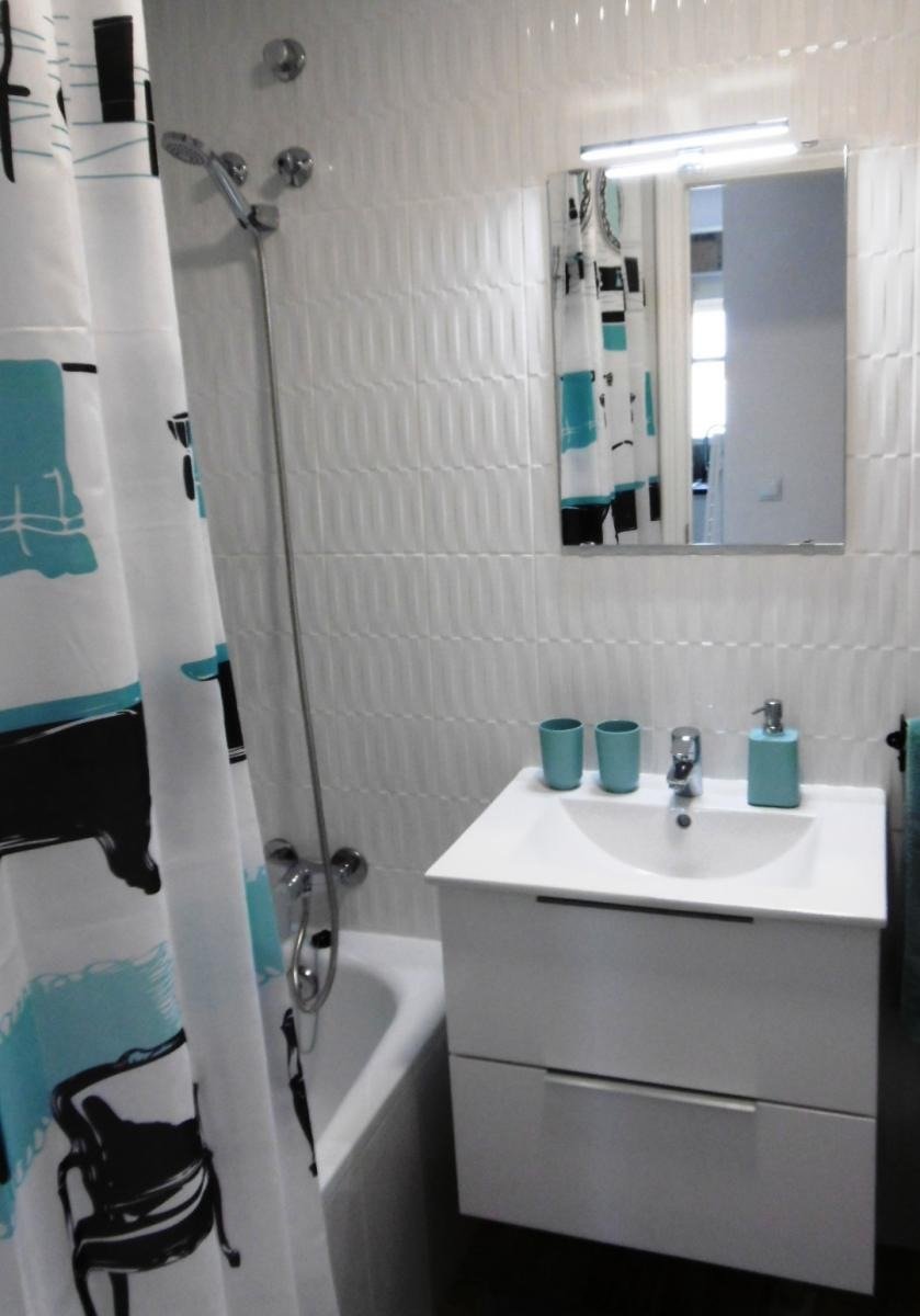 Baño completo con ducha sobre bañera