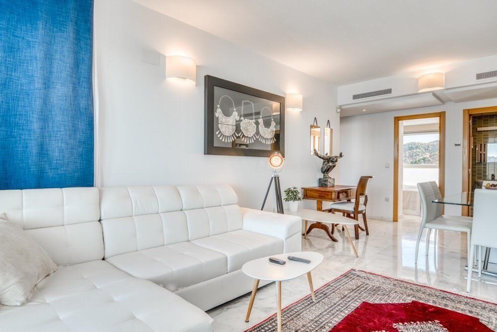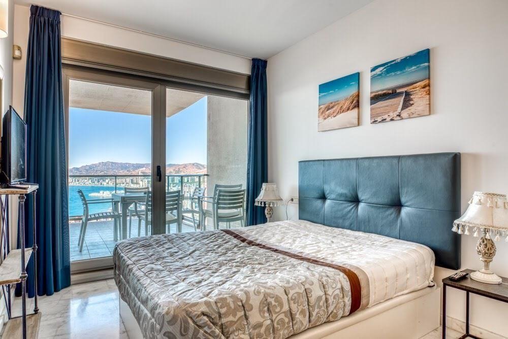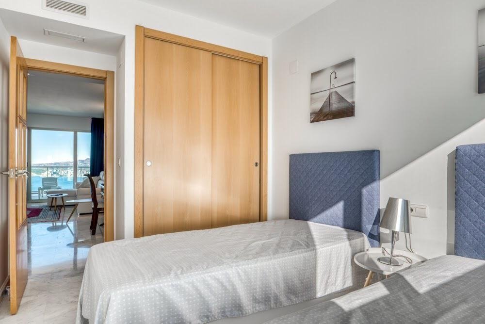 El apartamento de 100 m2 está ubicado en la planta 30 y incluye una gran terraza de 18 m2. Se trata de un apartamento de 2 dormitorios y 2 baños (uno con ducha y otro con bañera). Está equipada con suelos de mármol, ventanas de aluminio con climalit, aire acondicionado por conductos con función automática de calefacción / refrigeración, persianas eléctricas, cocina equipada, TV con antena central. Está amueblada con muebles de calidad, y la cocina está equipada con electrodomésticos de primera, todo nuevo. El precio incluye dos plazas en garaje subterraneo.