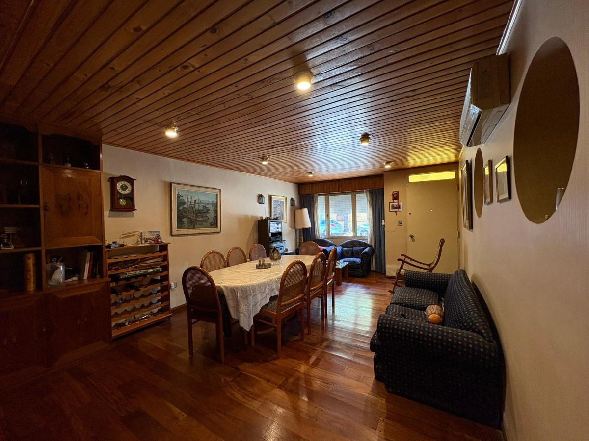 Ingreso por living comedor de 7 x 4 mts, con piso de madera, ventana al frente, modular amplio en madera en forma de L de 4 mts. x 2.50 mts para un optimo espacio de guardado.