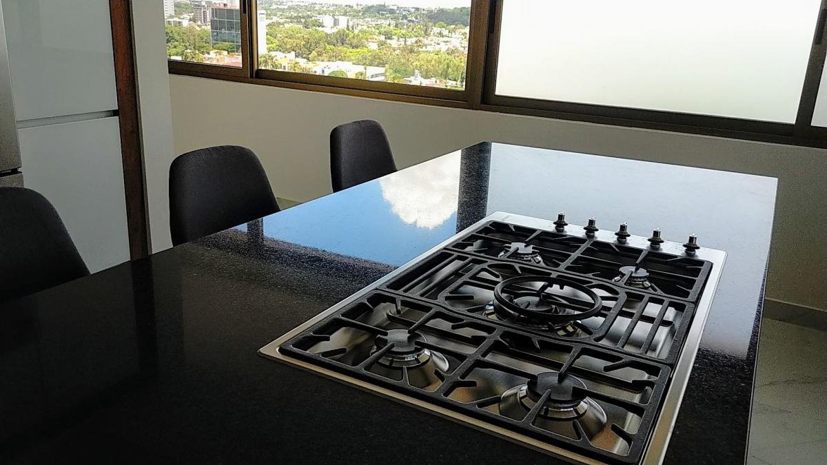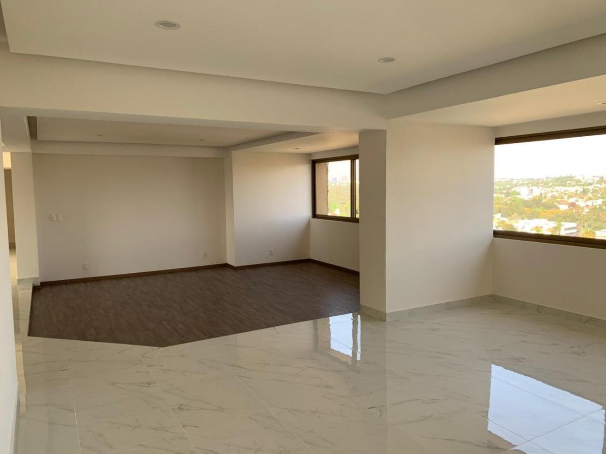 Departamento totalmente remodelado con acabados residenciales., listo para estrenar. solo 10 pisos y 10 departamentos con elevador directo. Cuenta con recibidor, sala, comedor muy amplios e iluminados. Cocina totalmente equipada. Cuarto y area de servicio, tres recámaras con baño y medio baño de visitas, ademas de un amplio estudio. Increibles vistas a Colomos.