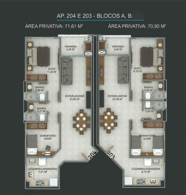 Emprendimiento en construcción con entrega prevista en Agosto de 2022 la Torre A, y en Agosto 2023 entrega de la Torre B. Emprendimiento en la Region de las Gaviotas area noble en la Playa Ingleses en terreno de 1.772m2, con ascensor, salón de fiesta, bicicletario piscina, el salón de fiesta y piscina comunitarios están localizados en la terraza de la Torre B con acceso para las 2 torres,playground, kids space,paisajismo, porteria con biometría electrónica, portón electrónico de hierro, pisos en porcelanato pulido, detalles en yeso en las paredes, sistema de intercomunicador, tubulación para alarma con sensor de presencia, tubulación para cámaras, gas central, agua caliente, medidores de luz, agua y gas individuales, balcones con parrillas privadas, detalles en la frente del edificio en vidrio espejado.Apartamento 203 BLOQUE A con 2 dormitorios siendo 1 suite, 2 baños, living, cocina integrada, area de servicio, balcón con parrilla privada a carbón, garaje para 1 auto, Area Util de 71,98m2,Area Total :100,62m2, localizado en el Primer Piso.