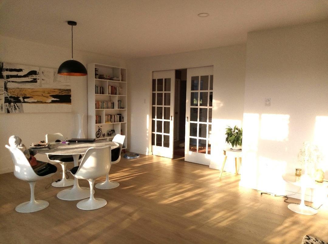 Se puede quedar todas la lamparas colgantes, persianas, cortinas, repisas y plantas del balcon.