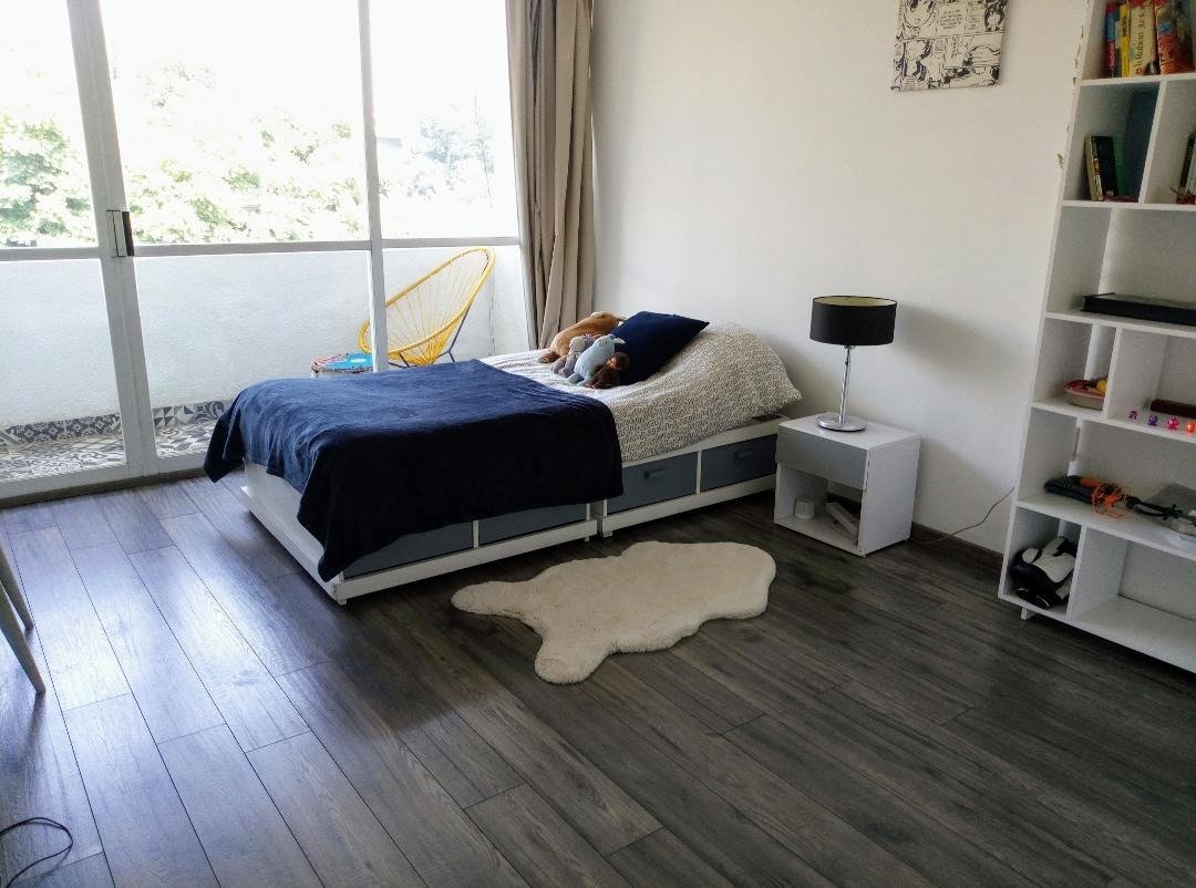 Consta de 3 recamaras amplias, 2 banos completos (uno con tina) 1/2 bano. La cocina es grande y cuenta con un desayunador y lavavajillas (se quedan), recibidor con closet, patio de lavado, cuarto de servicio, 2 balcones, 1 bodega + 1 estacionamiento de 24m2.