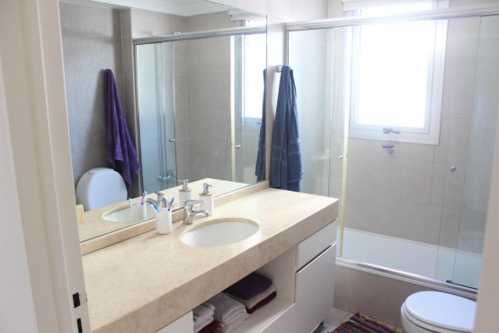 Baño completo con bañera de 3,35 x 1,70 mts. Toilete de 2,60 x 1 mts. y lavadero de 1,25 x 1,60 mts.