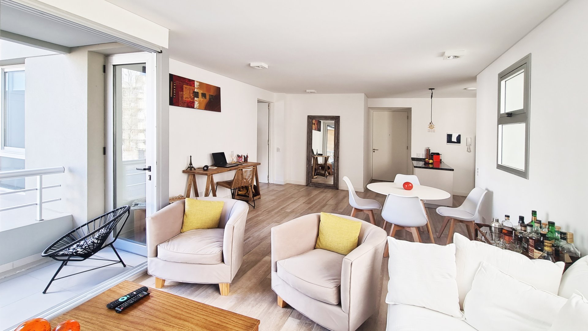 -Pisos de porcelanato modernos simil madera en living-comedor y dormitorios.