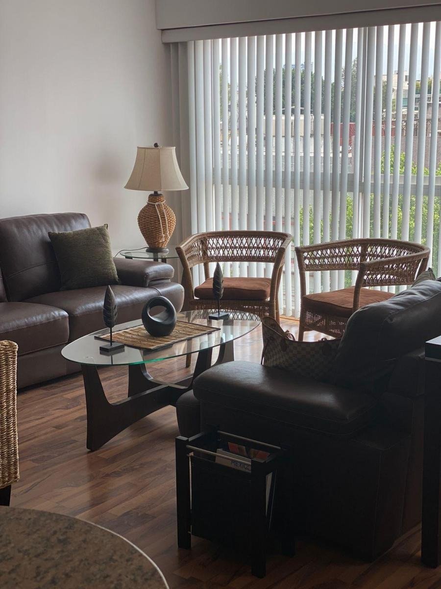 Hermoso departamento de 145m2, cuenta con 2 recámaras, 2 baños completos, cocina integral , 2 lugares de estacionamiento y roof garden privado con linda vista. En perfectas condiciones recién pintado listo para ser habitado. Excelente ubicación. Muy buen mantenimiento del todo el edificio que además cuenta con 2 elevadores. En una de las zonas más bonitas de la ciudad ven a conocerlo.