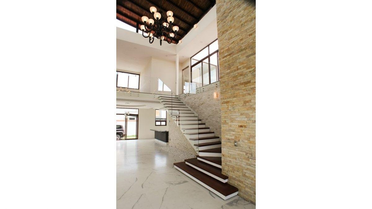 La casa cuenta con una excelente calidad de construcción y acabados de lujo, en una área total de 338.00 m2 de construcción distribuidos en dos plantas, cuenta con una amplia y cómoda sala a doble altura, comedor, barra desayunador, cocina equipada con cubierta de granito e isla para la estufa, una área de estudio, cava, baranda, escaleras con barandal de cristal templado, 3 recámaras con baño y closet, y una recámara principal con closet-vestidor y tina, además una sala de televisión, garaje para 2 autos, cuarto de servicio con baño, área de lavado, jardín amplio, pensando en el cuidado del medio ambiente y en el ahorro de energía se cuenta con un calentador solar (boiler) de conexión mixta para eficientar el servicio de agua caliente de la casa, amplias áreas verdes y arquitectura del paisaje en jardines.