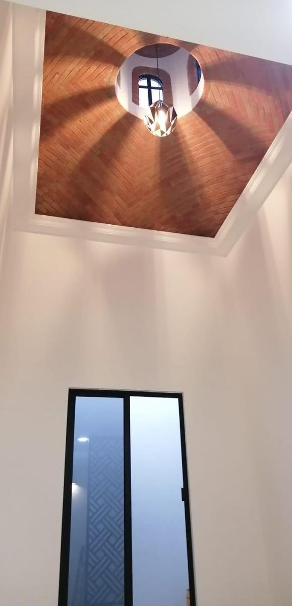 Planta Baja: doble cochera, sala, cocina integral, comedor, estudio, baño completo, área de servicio techada, patio con jardín, Boiler y control de cerco eléctrico.