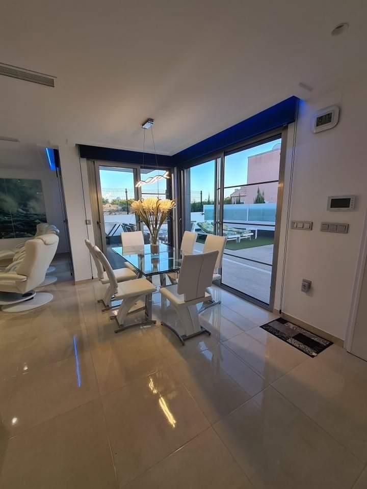 Una preciosa villa situada en Orihuela Costa en la zona de Villa Martín a 1km del campo de golf a 2km del mar y del paseo marítimo Zenia. La villa cuenta con piscina privada, solárium, parking individual y fantásticas vistas. Dispone de 4 dormitorios con baño privado y mancave. El edificio está construido con materiales de alta calidad. Fue construido en 2019 y se encuentra en una parcela de 250m².