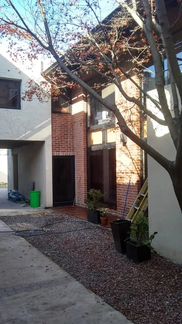 Estructuralmente se conforma de la siguiente manera: en PB: Rejas sobre línea municipal, pequeño retiro al frente y entrada para vehículos. Hall de entrada/ recepción, sala de reuniones con baño completo, sala de edición, amplio comedor con vista al jardín, cocina, dos baños, hall con acceso a patio, depósito, depto. de dos ambientes para encargado. Módulos de estacionamiento.
