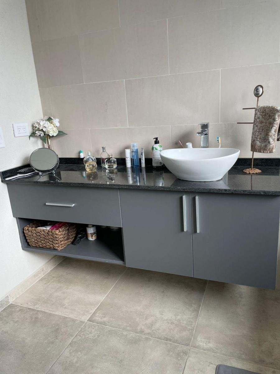 1 Dormitorio principal en suite con baño completo , vanitory con bacha de apoyo y mesada negro mara . Amplio pasillo y vestidor completo .