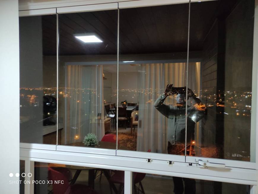 ** Varanda com piso em cerâmica com blindex