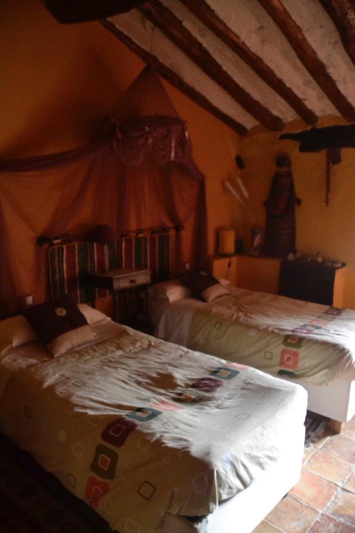4 amplios dormitorios, dos de ellos con baño privado, un tercer baño amplio y una habitación abuhardillada (ya parcialmente amueblada para hacer un 5º dormitorio con baño). Todos con techos de 'Vigas y Bóbedas'.
